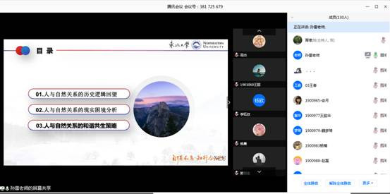4月7日和10日,东北大学副校长、博士生导师孙雷教授分别以“人与自然和谐共生”和“矿产资源开发与可持续发展”为主题给资源与土木工程学院学生上了两堂《生态经济与复垦》思政课。这门在2019年成为东北大学首批“课程思政”试点的课程,在疫情防控期间通过网络教学,受到学生的追捧。东北大学以课程思政为牵引,在推进新工科与新文科跨学科交叉教学又迈进了一步。